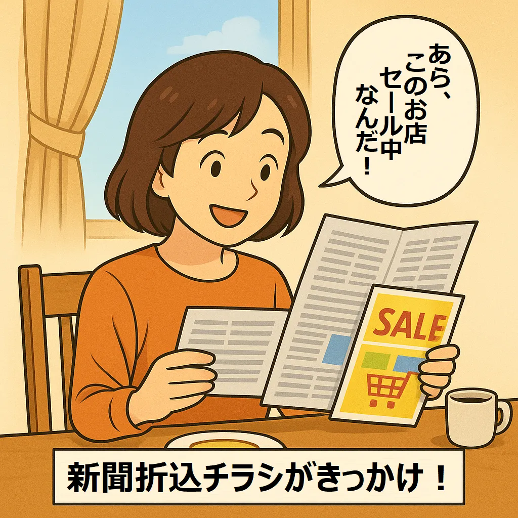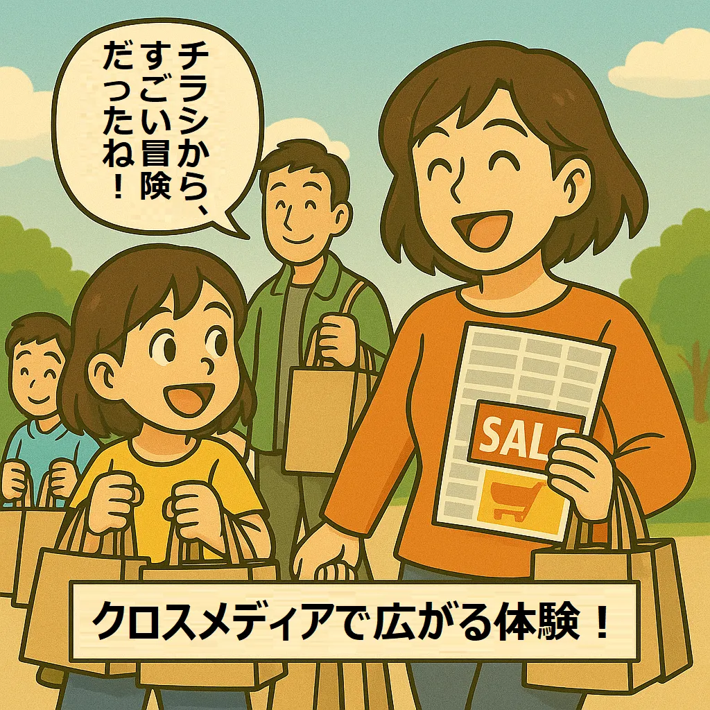 折込チラシを起点にすれば、クロスメディアの流れをスムーズに作れます。