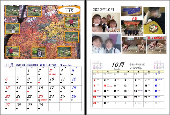 ついでなのでカレンダーを作ってみよう!と思い立ち、ファミリーカレンダーを作るようになりました。月ごとに一年前の写真で構成しています。そして気付けば2022年号で15作目、バックナンバーは我が家の思い出アルバムとなっています。スマホを誰もが持つ時代、ここ数年は12月になると家族全員より写真をもらい編集しています。