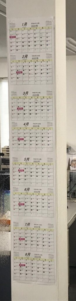 ちなみに会社の私のデスク横には、先述の自作Excelカレンダーが貼ってあります。