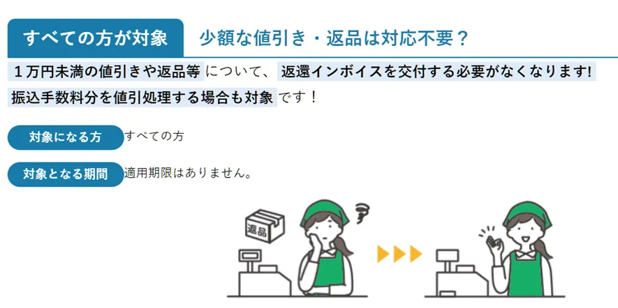 請求額から振込手数料を差し引いて入金があった場合、これまでは単純に値引処理で済んでいたのですが、インボイス制度導入後はここに含まれる消費税は別途「返還インボイス」の発行が必要とのこと。