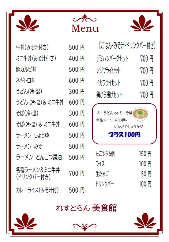 ※現在のメニューです。
