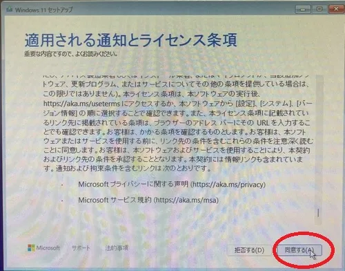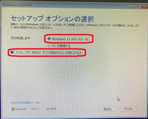 「ファイル、アプリ、設定など、すべてが削除されることに同意します」のチェックをオンにします。