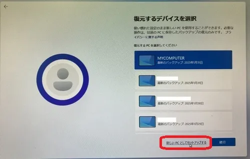 もし、他のPCの設定を引き継ぎたい場合は、ここで端末を選択すると引き継ぐことができるようですが、私は試したことがありません。