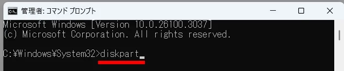 コマンドプロンプトで、以下の文字列を入力してEnterキーを押してください。