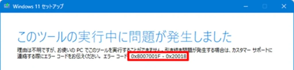 Win10のPCで実行したところ、何度やっても以下のように失敗しました。
