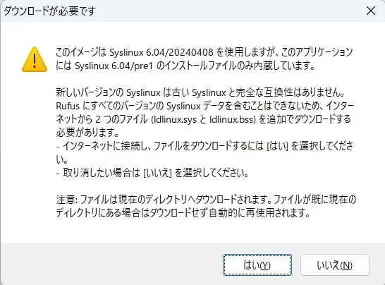 「ISOファイルをダウンロード」→「RufusでUSBに書き込み」という手順になります。