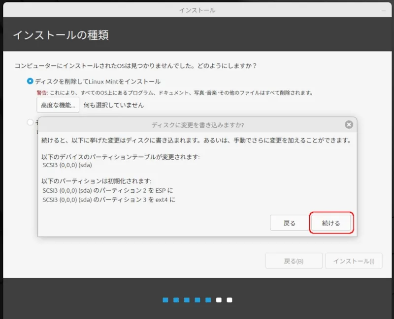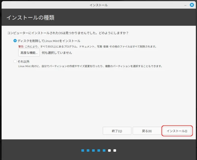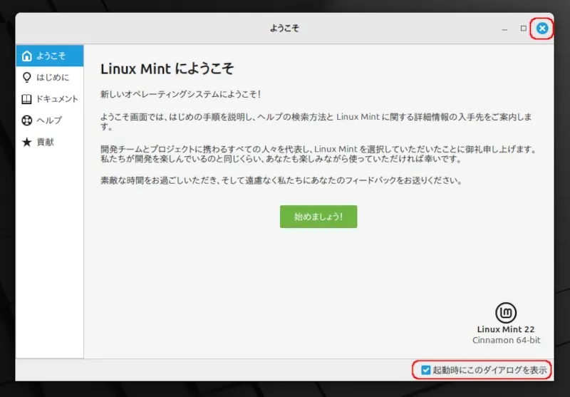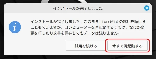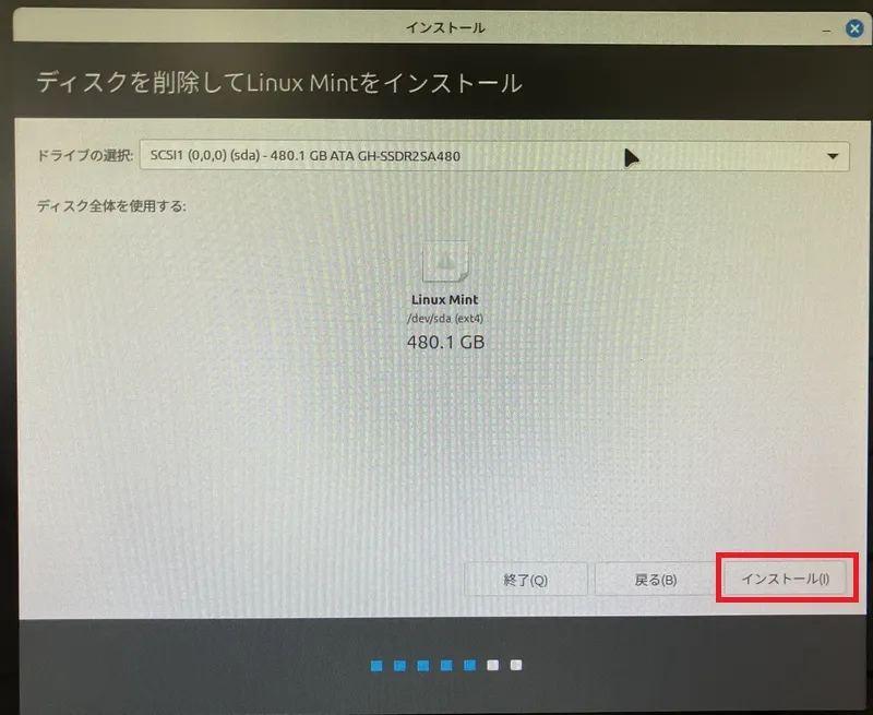 デスクトップ左上の「Install Linux Mint」をダブルクリックして、PCへのインストールがスタートします。