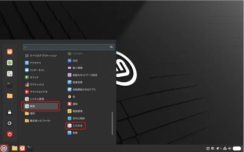 デスクトップ画面右下のシステムトレイに表示されるキーボードのマーク(Fcitxアプレット)を右クリックします。
