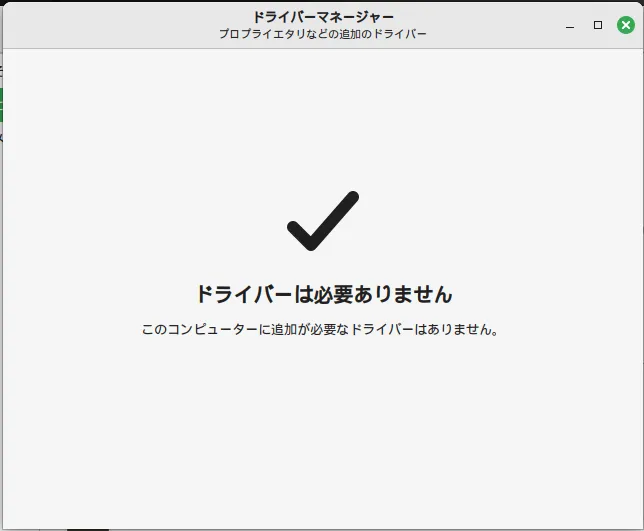 今回は不足しているドライバーがなかったため、このようなメッセージが表示されました。