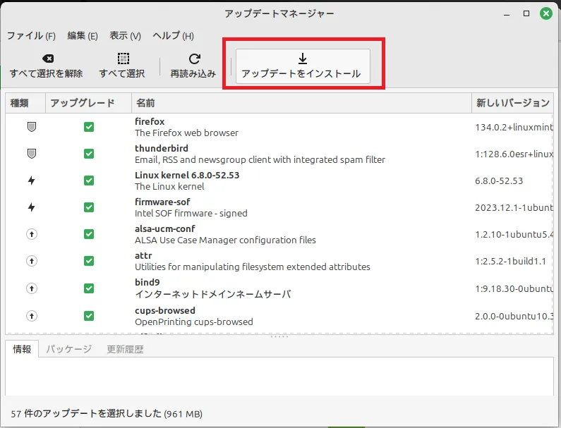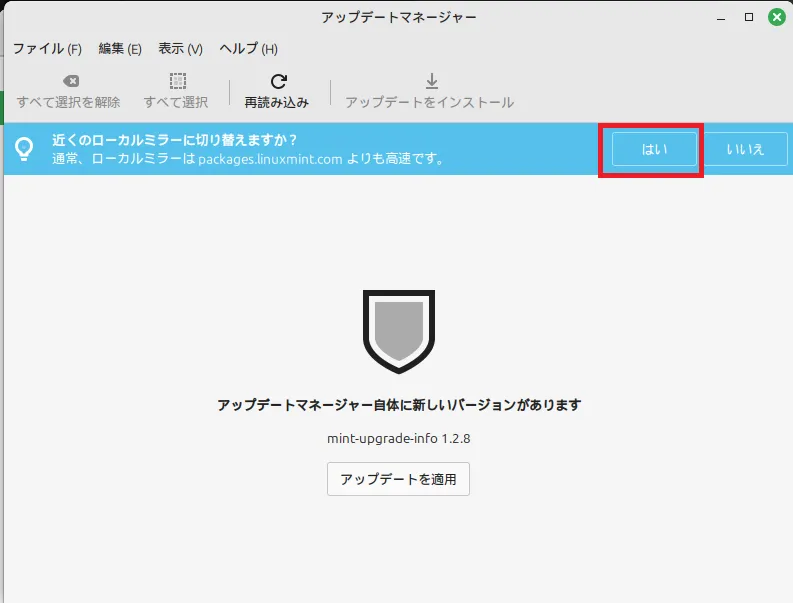 アップデートマネージャーは、初期設定時だけでなく、定期的に実行することでLinux Mintを最新の状態に保つことができます。
