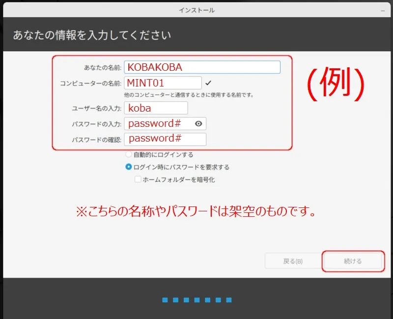 ここで設定した情報は非常に重要です。特にパスワードは頻繁に使用するため、必ず記録しておきましょう。