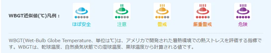 WBGT値は気温だけでは正確に算出できませんが、おおよその目安として