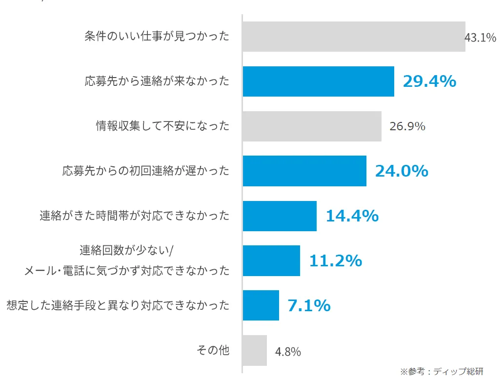 半数近くの求職者が同時複数応募していることに加え、営業時間外繁忙時間に応募しているためターゲットにあった良い人材を面接・採用に繋げるためにはスピーディーな対応が重要です。