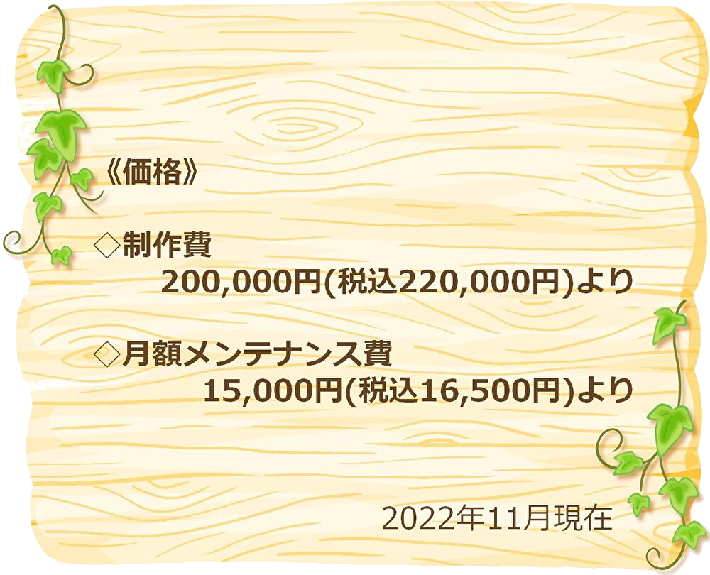 ※ドメイン維持費とサーバー使用料は、お客様の業種やご希望の環境により実費を頂戴する場合がございますのでご了承下さい。